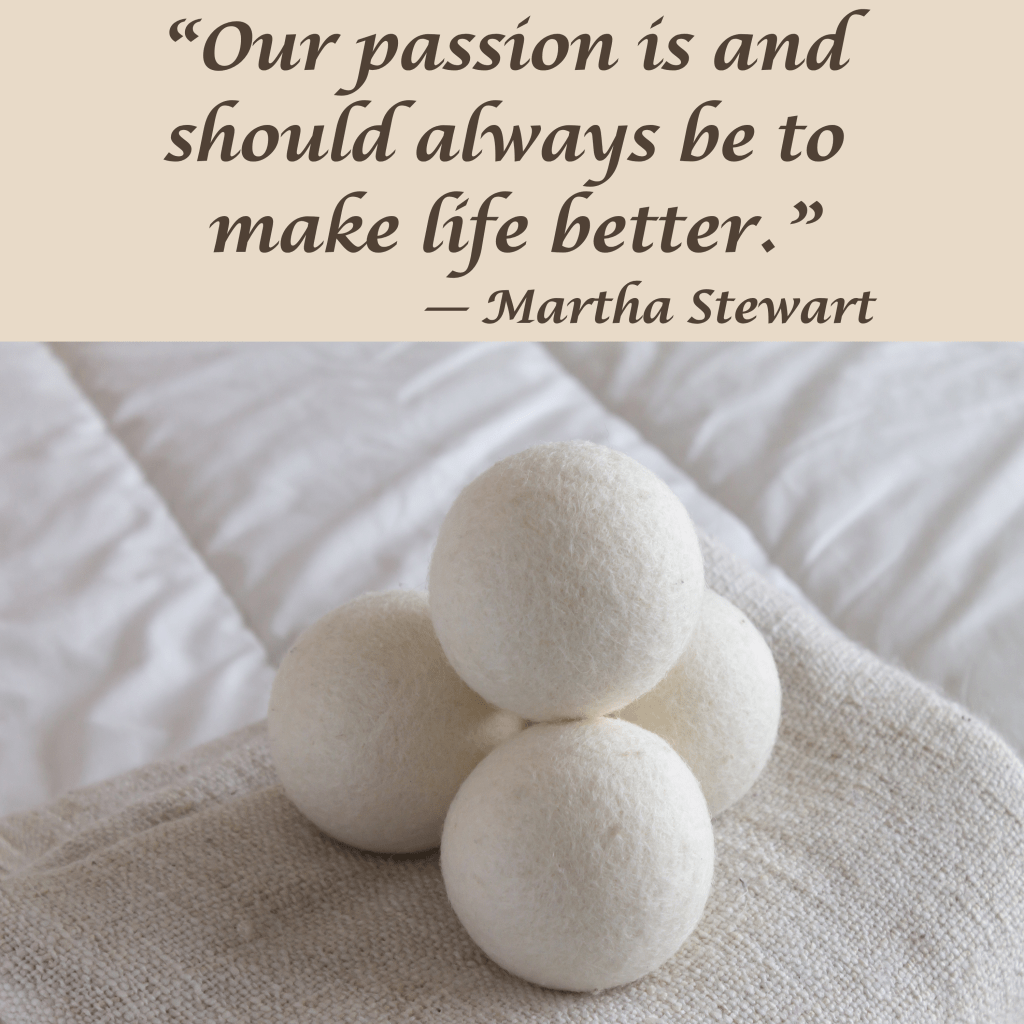 I wanted something natural, reusable, and gentle. Wool dryer balls felt like a no-brainer. As Martha Stewart aptly put it:
